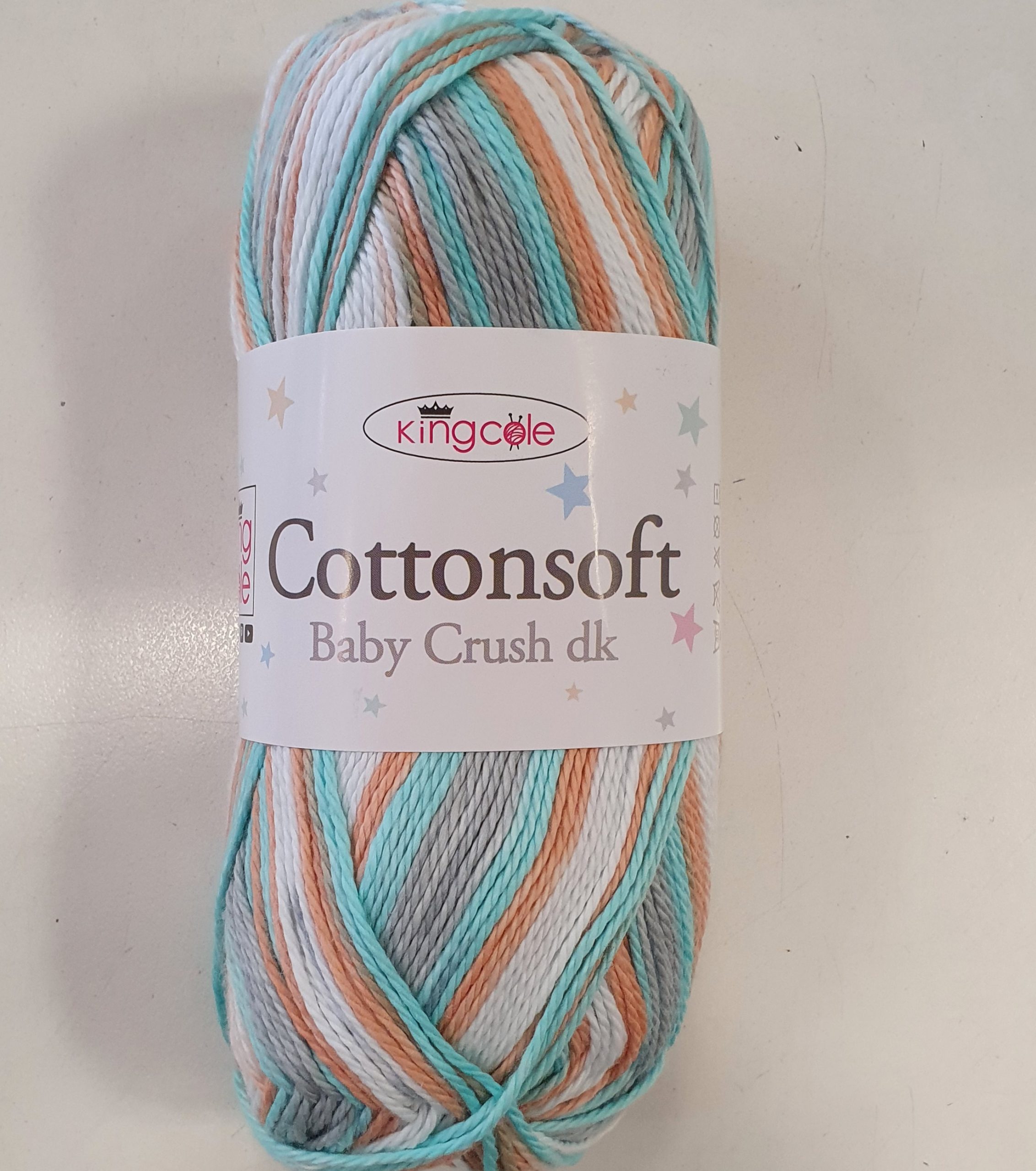 Cottonsoft Crush DK from King Cole is a very soft 100% cotton and excellent for baby garment and blankets.