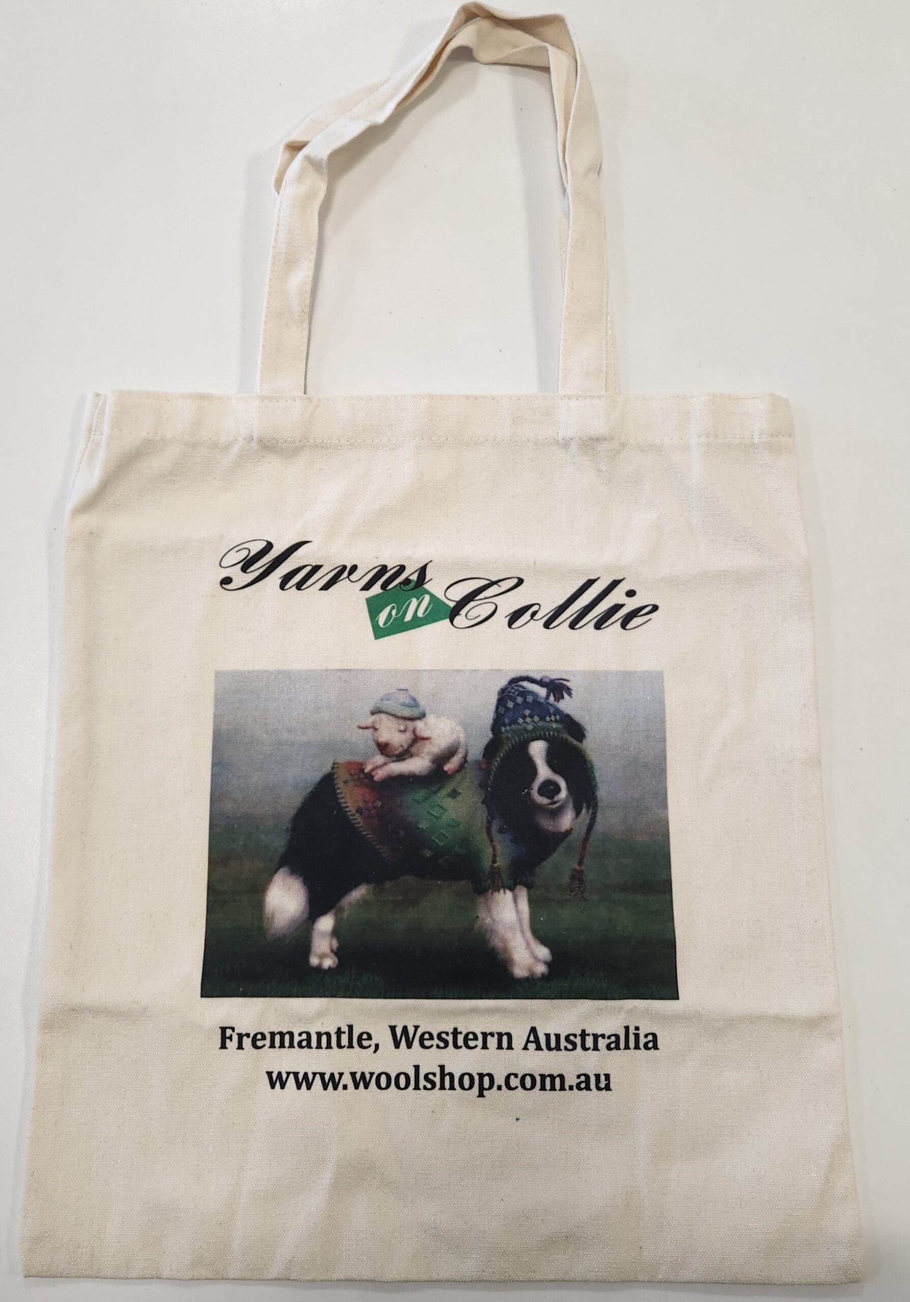 Heavy duty cotton bag with straps and Yarns on Collie logo